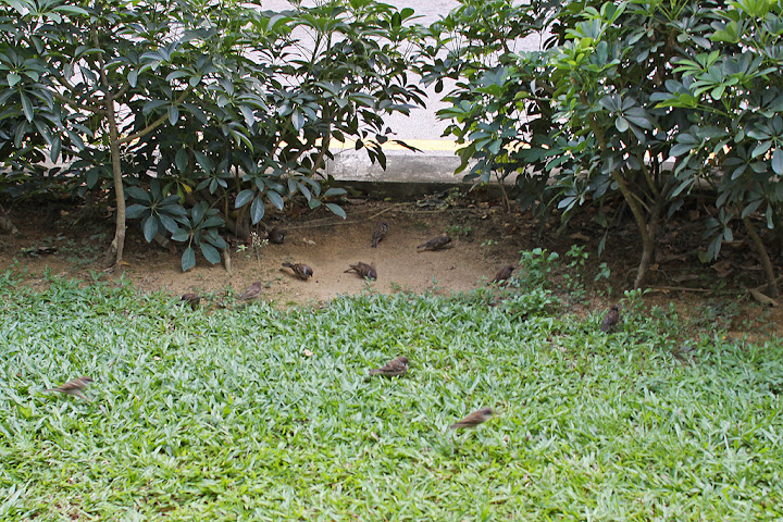 Outside Victoria hotel, beyond its pavement, a little sandy patch broke the green monotony that separates the pavement and the road. About 15 sparrows fought over a sandbath spa. It was a peculiar sight seeing the little creatures shooing each other off and wiggle in the sand.