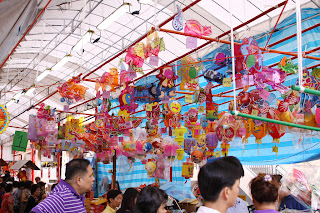 The grimy back alley gave way to a pedestrian mall around the temple grounds. We were reminded of Mid Autumn Festival by a cacophony of sounds shouting urgent cries of sales. A bustling market place was filled with the loud sale of pomelo of all shapes and sizes from Malaysia to Thailand. Judging from the throng of the shopping crowd, I wondered since when Mid Autumn has become so big in Singapore. Or was I too cloistered up in my small little world ?![]() |
